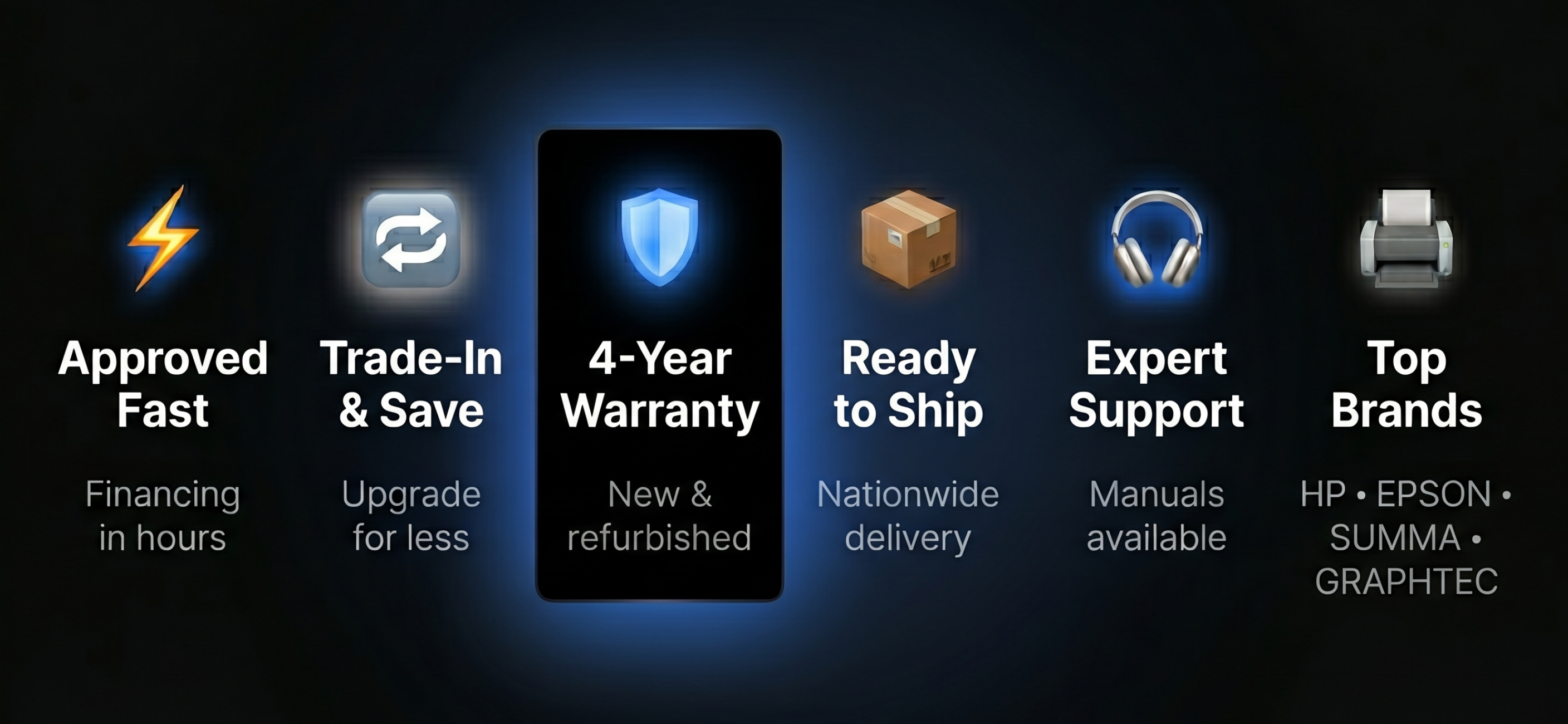 Turn your used equipment into credit toward your next printer or plotter. Our trade-in program makes it easy to upgrade while saving money while maximizing the value of your current machine.