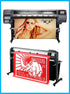 Roll feed; take-up reel; automatic cutter (for vinyl, paperbased media, backlit polyester film)